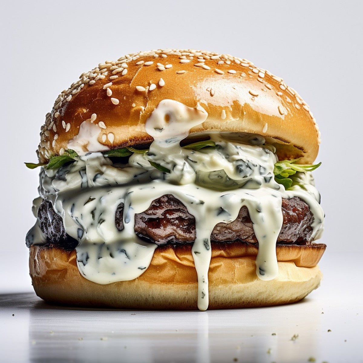 Elevate your burger experience with dhot.'s Blue Cheese Truffle Mayo. A touch of luxury in every bite.
